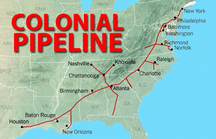 По нефтепроводу Colonial Pipeline протяженностью 8850 км ежедневно транспортируется 2,5 млн баррелей нефтепродуктов, обеспечивая 45% потребности Восточного побережья в дизеле, бензине и авиационном топливе.